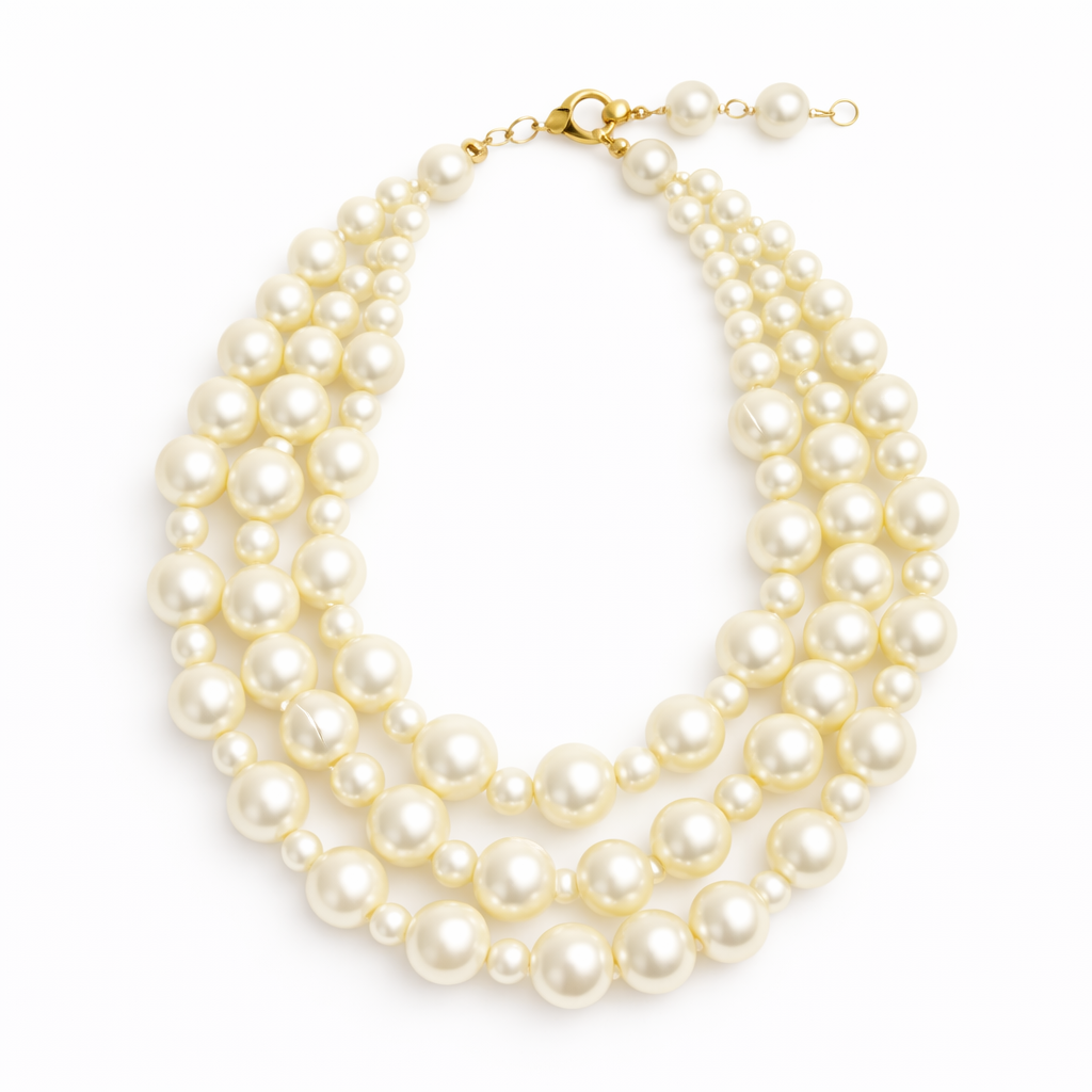 Fabuloso collar 3 filas en resina facetada color perla. Es una pieza chic, sublime, preciosa y tremendamente estilosa! Es de esos collares que roban miradas y consiguen todo el protagonismo❤️