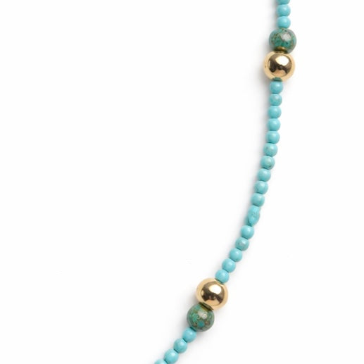 Compuesto por turquesas de 4 mm combinadas con toques de turquesas más grandes y hematites dorados de 8mm.